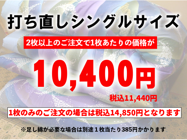 打ち直し価格 シングルサイズ・・・10,400円(税込11,440円)