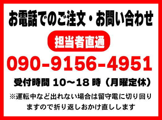 お問い合わせなどは、 090-9156-4951もしくはお問い合わせフォームよりお願いいたします。
